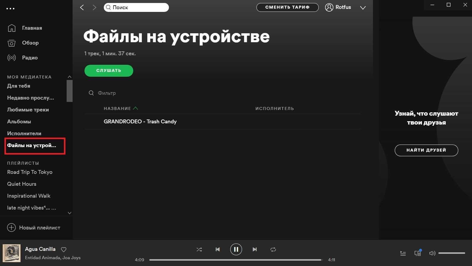 Чтобы получить к нему доступ из Spotify, вы должны найти в меню в левой части экрана Раздел «Локальные файлы».