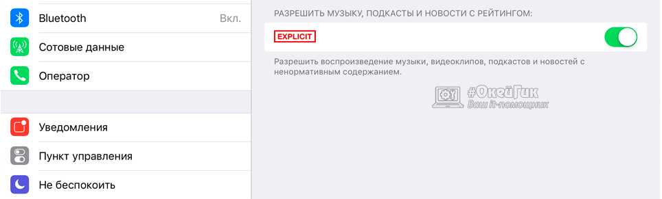 Подобные ограничительные настройки используются родителями, желающим уберечь своих детей от прослушивания подобного контента. Поскольку компания «Apple» довольно относится к семейным ценностям и защите прав детей, данная настройка может быть по умолчанию активирована в гаджетах от Эпл.