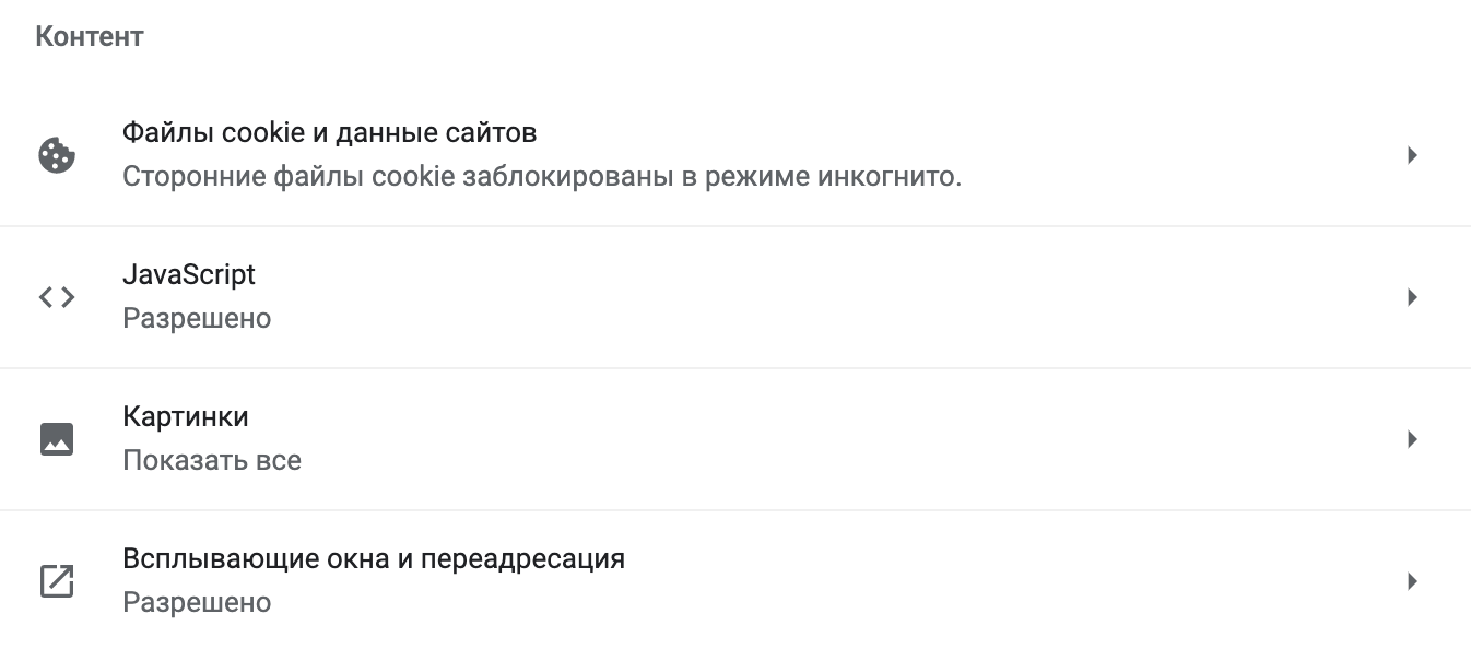 Прокрутите вниз до меню «Всплывающие окна и переадресация»;