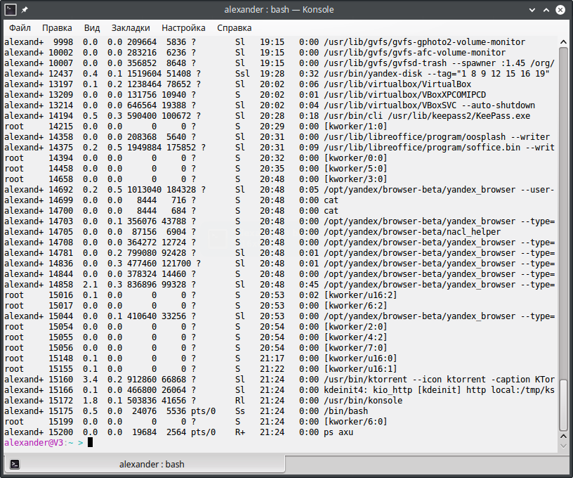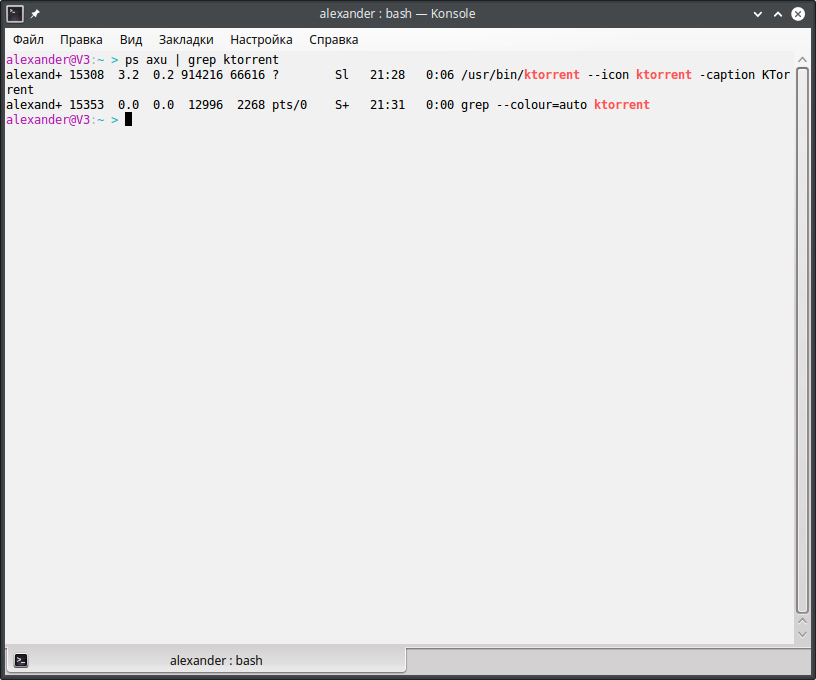 Здесь у нас и представится возможность использовать вторую хитрость — как видите, у KTorrent несколько процессов, чтобы завершить их все, я использую команду killall: