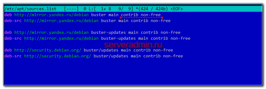 deb http://mirror.yandex.ru/debian buster main contrib non-free deb-src http://mirror.yandex.ru/debian buster main contrib non-free deb http://mirror.yandex.ru/debian buster-updates main contrib non-free deb-src http://mirror.yandex.ru/debian buster-updates main contrib non-free deb http://security.debian.org/ buster/updates main contrib non-free deb-src http://security.debian.org/ buster/updates main contrib non-free