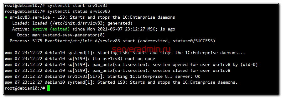 $ sudo service srv1cv83 start