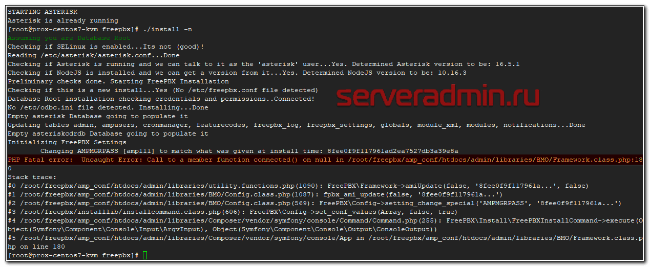 Переходим в браузере по ip адресу или доменному имени сервера и создаем учетную запись администратора Freepbx. При первом заходе в 14-ю версию я увидел ошибку.