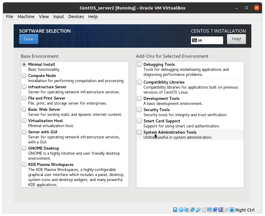 Обратите внимание на скриншот: здесь можно выбрать какие компоненты CentOS будут установлены.