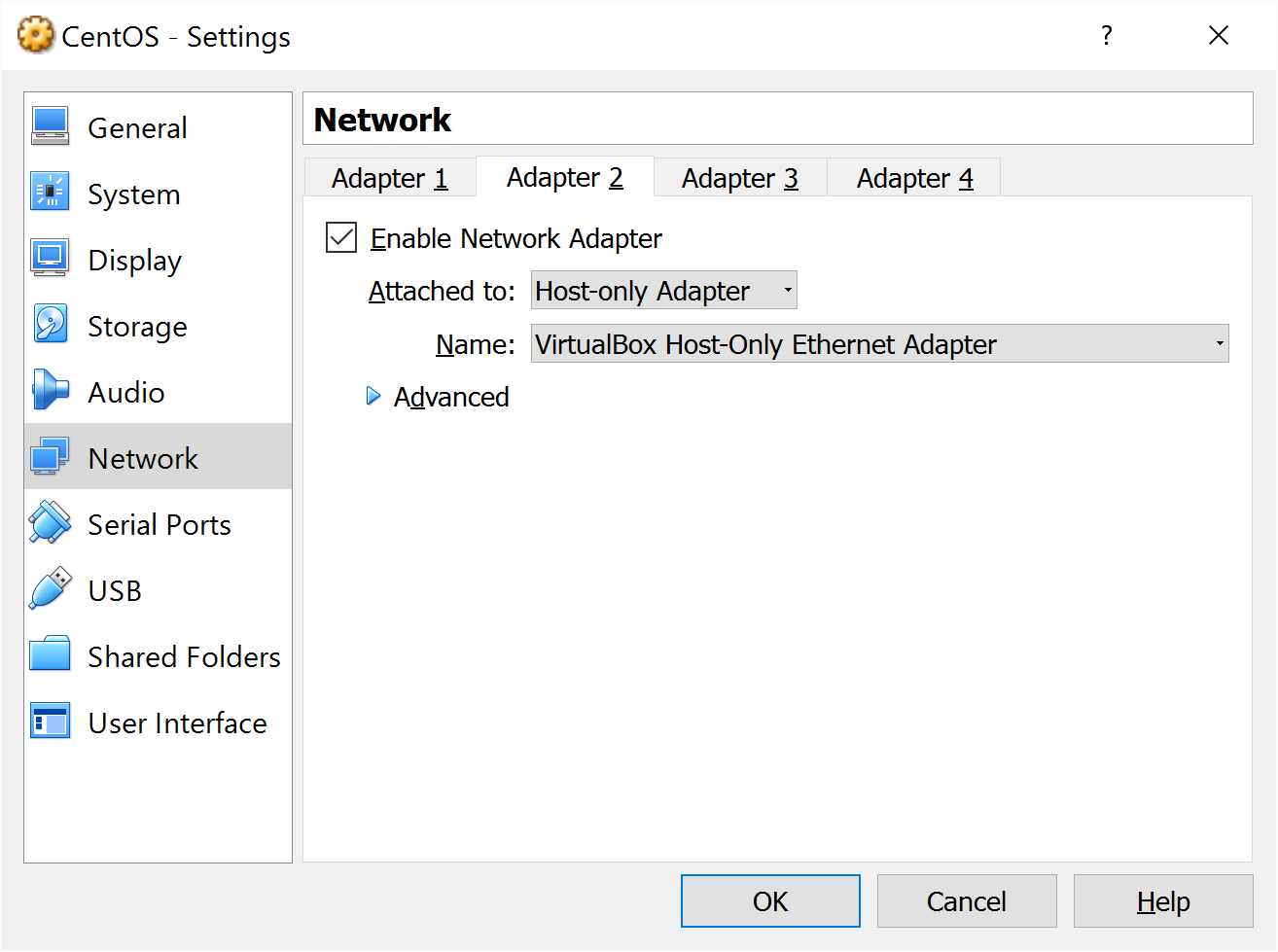 Но для работы с веб-сервером может быть удобнее и безопаснее добавить ещё один тип адаптера, который работает только на связь с хостом. Он так и называется host-only.