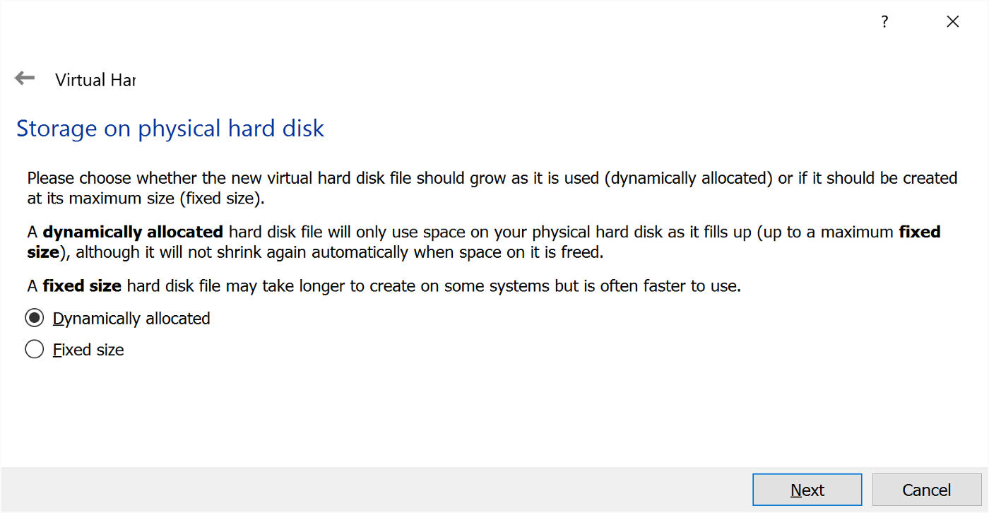 - Указать размер жесткого диска для использования – динамический или фиксированный. Лучше выбирать фиксированный и задавать его размер вручную.