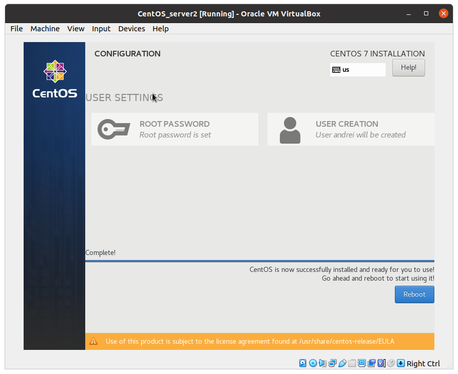 - далее завершаете установку и перезагружаете машину – она полностью готова к использованию.