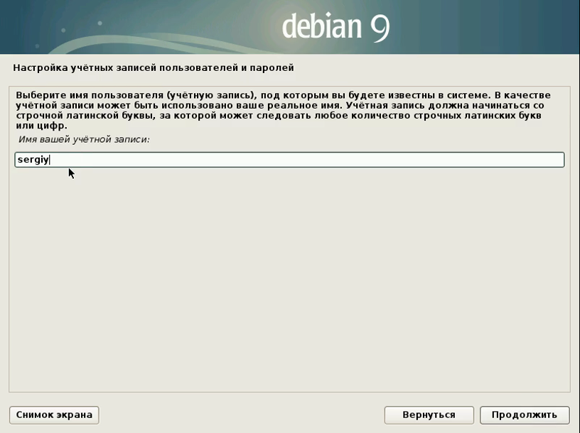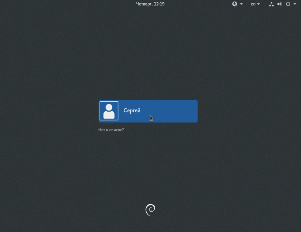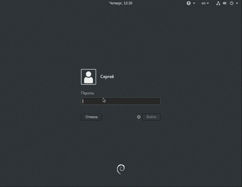 Выберите пользователя, которого создали во время установки и введите его пароль: