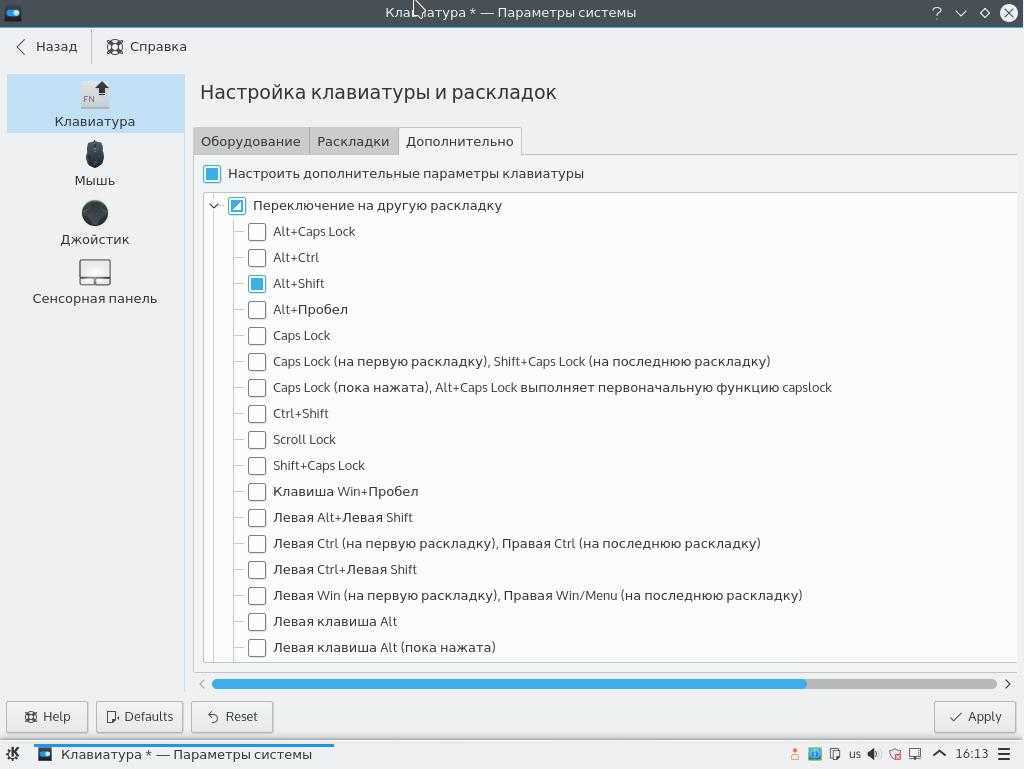 Устанавливаем галочку напротив Alt+Shift, и другого удобного сочетания: