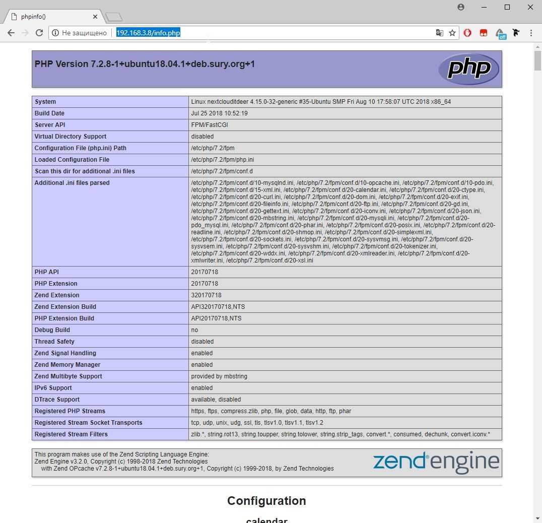 Адрес моего сервера — 192.168.3.8, в этой статье я буду вводить его в браузере на другом ПК, для проверки работоспособности PHP7.2. Вы должны будете ввести свой IP-адрес.