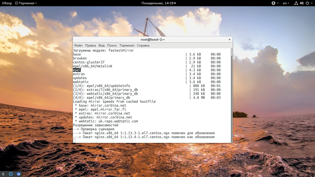 Затем обновляем списки доступных пакетов из нового репозитория. В CentOS это делать не обязательно в отличие от Ubuntu, но будет так будет более правильно: