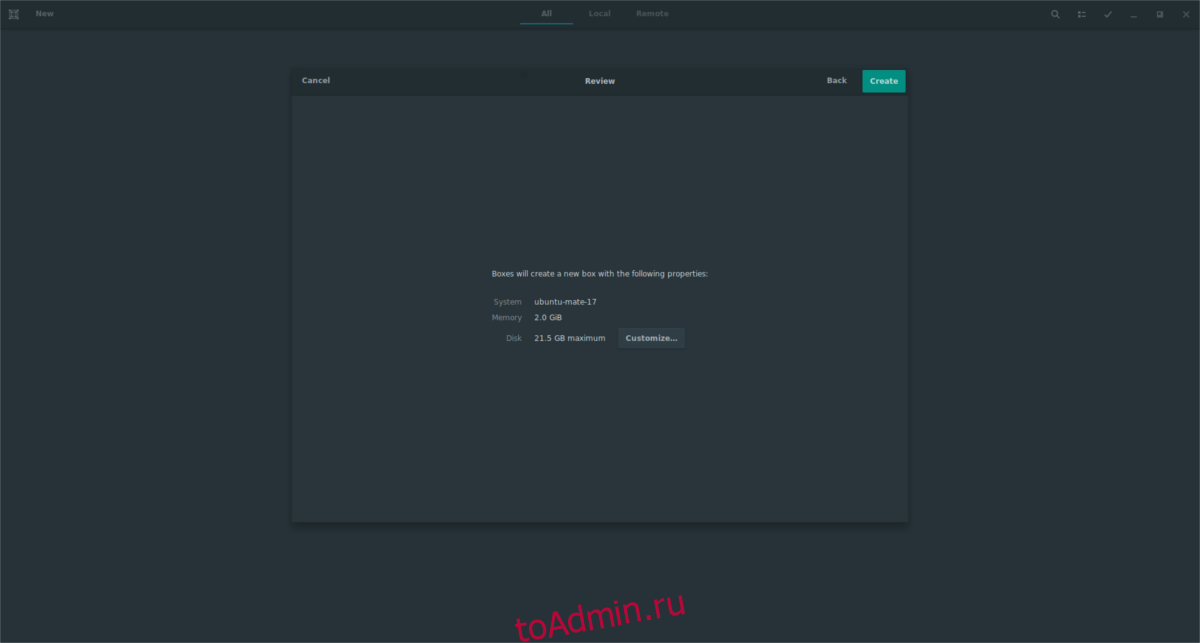 Как вариант, вставьте прямую ссылку в «удаленный». Это позволит Gnome Boxes напрямую загрузить операционную систему, а затем провести ее через процесс создания. Время загрузки примерно такое же, как и в обычном браузере, так что наберитесь терпения.
