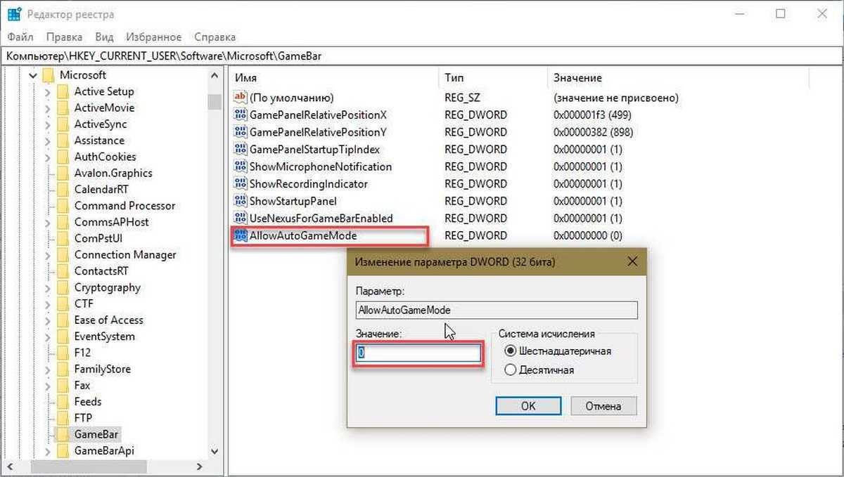- По умолчанию этот ключ будет иметь значение . Он отключит игровой режим. Если вы хотите включить режим игры, измените его значение на 1.
