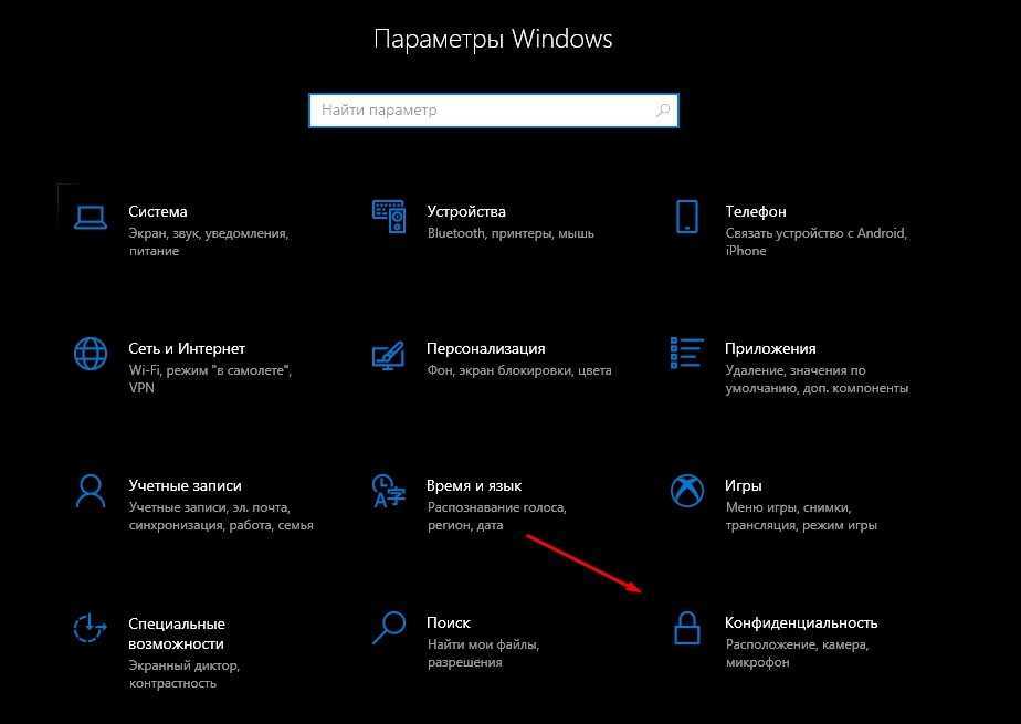 выбрать «Конфиденциальность»;
