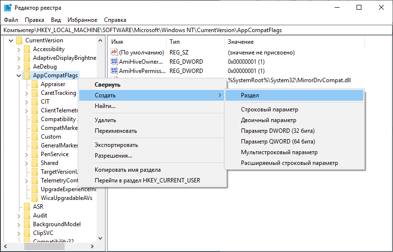 - Путь HKEY_LOCAL_MACHINE \ SOFTWARE \ Microsoft \ Windows NT \ CurrentVersion \ AppCompatFlags \ Layers позволяет настроить запуск приложений для всех пользователей компьютера.