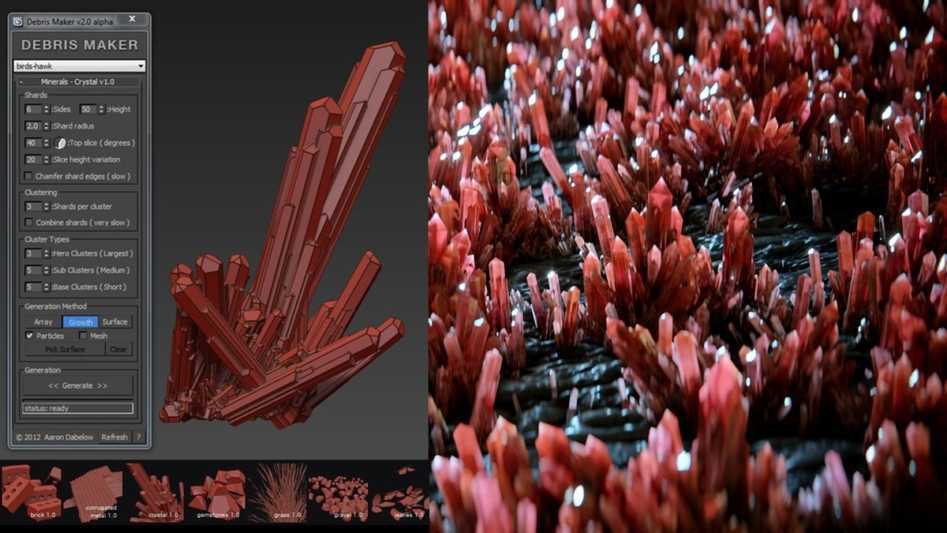 Debris Maker 2.0 для 3dsMax. Есть множество плагинов, которые облегчают создание похожих объектов. От паркета до толпы персонажей.