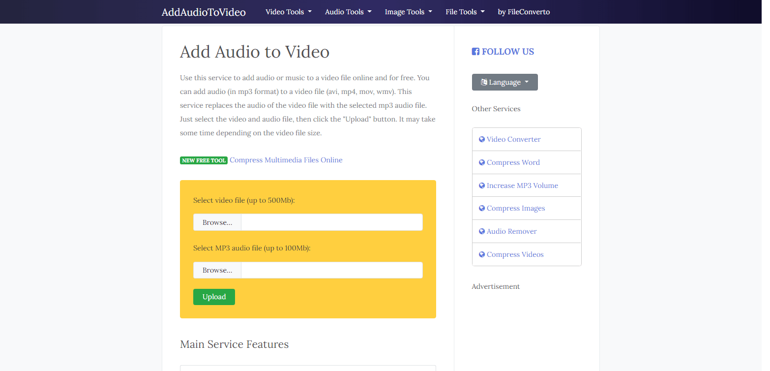 После выбора видео и аудиофайлов, нажмите кнопку Upload.