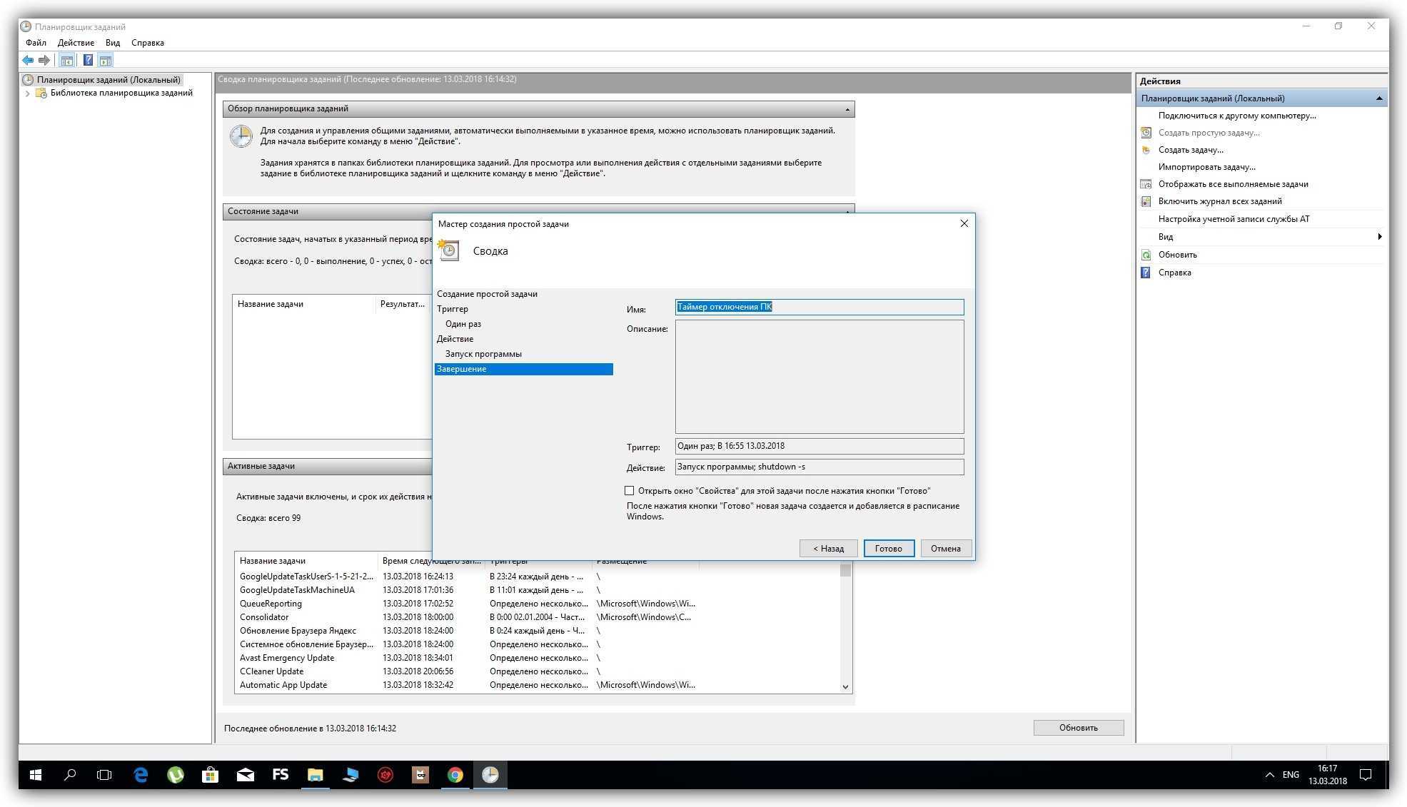 Завершив создание задачи, в указанное время ваш компьютер выключится.