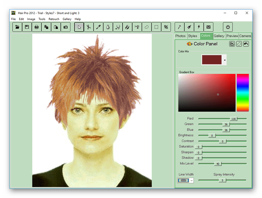Еще одна платная разработка, с помощью которой можно подобрать цвет волос. Как и у предыдущих, ее основной функцией является подбор причесок. Программа сделана добротно, в ней много инструментов для редактирования создаваемого образа. Но функция подбора цвета волос, по сравнению с JKiwi, проработана слабее. Оценить возможности программы можно, скачав пробную версию.