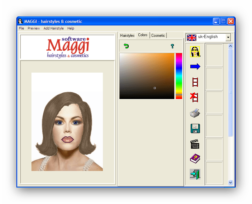 Программа Maggi в свое время была достаточно популярной. Несмотря на отсутствие русскоязычного интерфейса, она отличается простотой в использовании. Цвет волос подбирается из стандартной палитры, что позволяет установить любой его оттенок самостоятельно. Новые версии Maggi давно не выходят, но она все еще может быть интересна для некоторых пользователей.