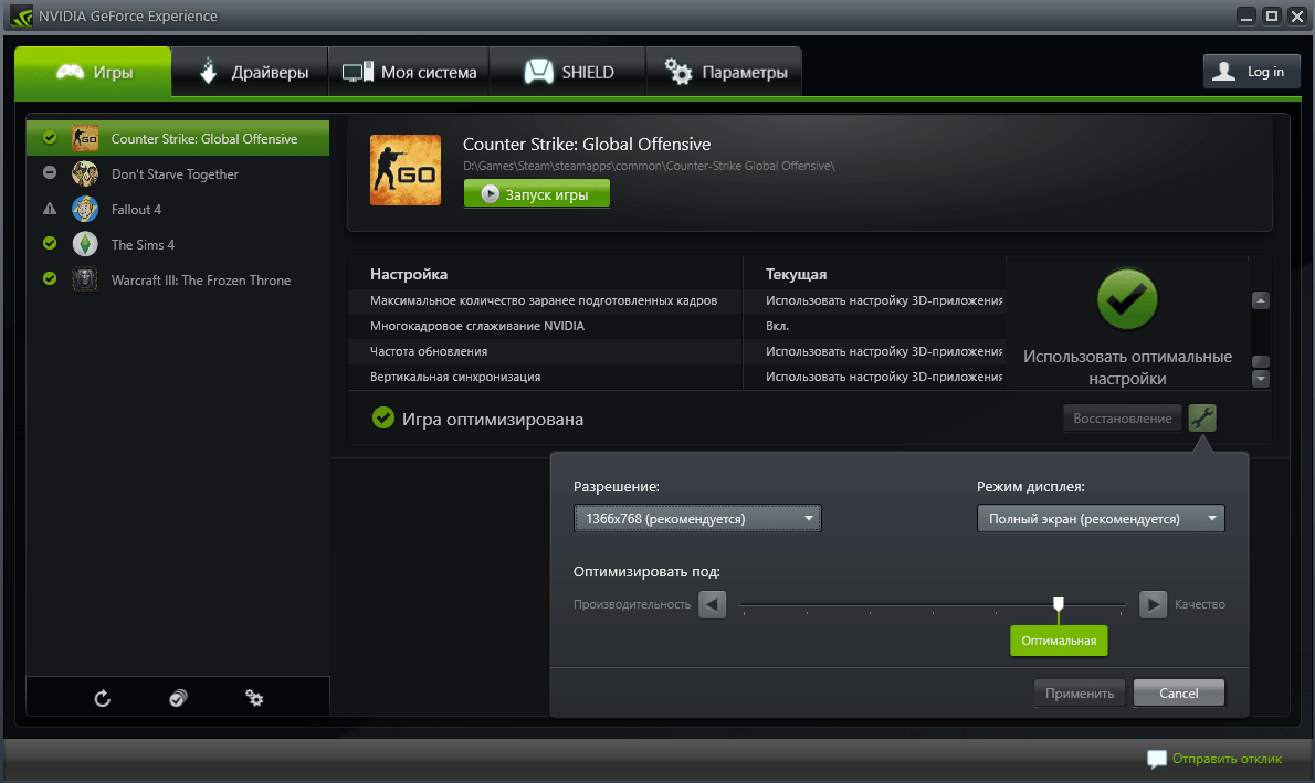 После оптимизации работы ОС, можно перейти к внутриигровым настройкам.