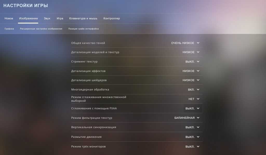 CS:GO предлагает множество графических эффектов, которые снижают фреймрейт. Профессиональные игроки отключают их, так как из-за них ухудшается видимость определенных текстур. Рекомендуются следующие настройки: