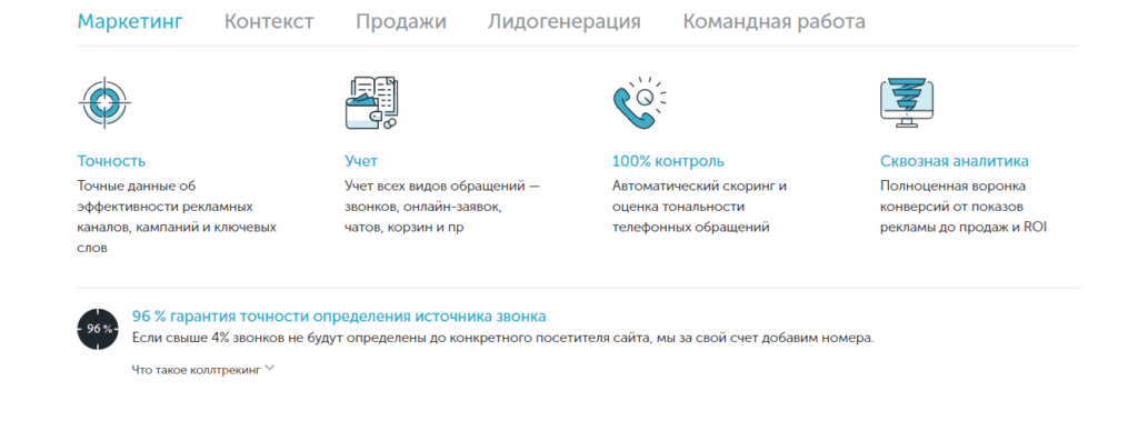 Calltouch – возможность сквозной аналитики и настройка коллтрекинга.