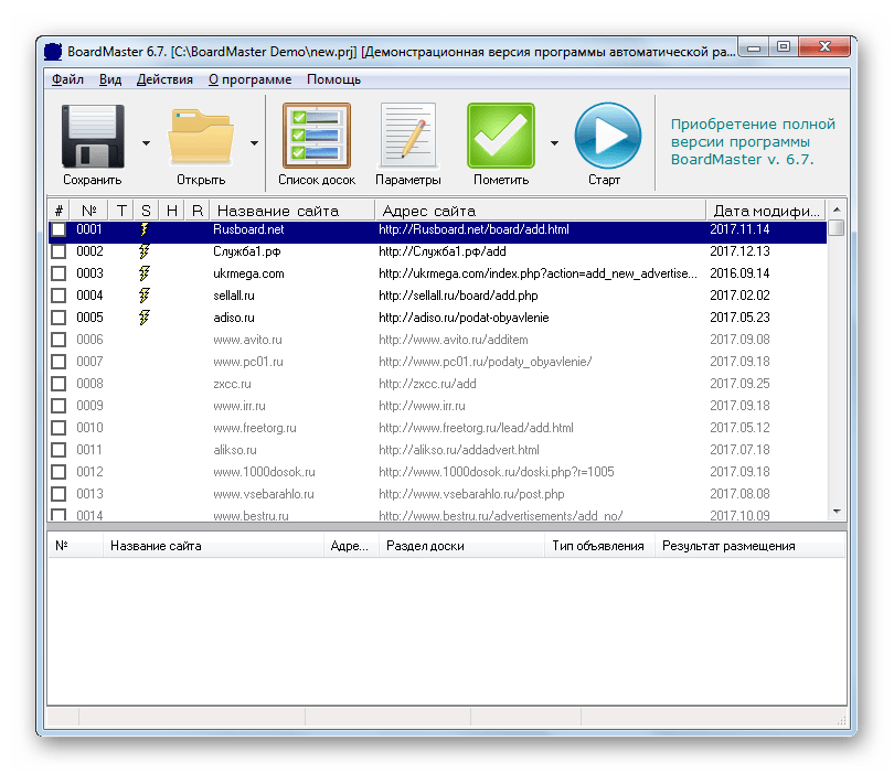 BoardMaster является единственной программой из перечисленных в данной статье инструментов для создания и рассылки электронных объявлений, которая регулярно обновляется. В настоящее время в её базе присутствует более чем 4800 площадок, большинство из которых на данный момент актуальны. Имеется возможность пополнения списка, как полностью вручную, так и через поиск в интернете. Есть функция рассылки в несколько потоков и с помощью прокси.