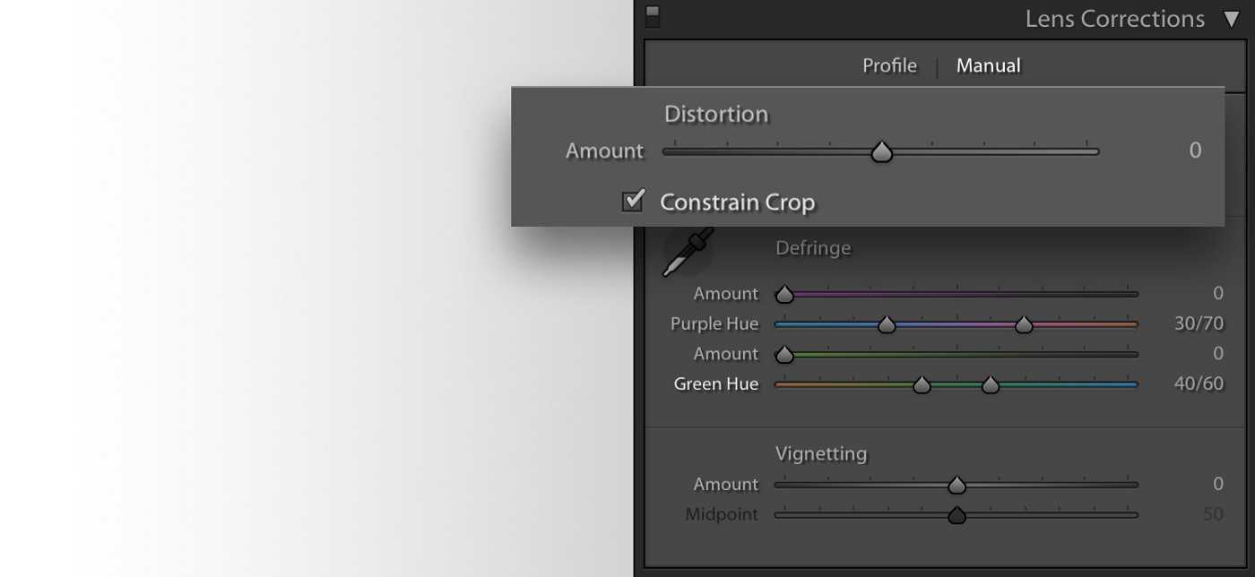 Для этого используем ползунок Distortion (Дисторсия).