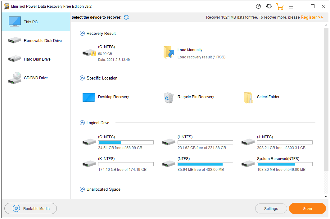 Загрузите и установите MiniTool Power Data Recovery на свой компьютер с Windows 10 и выполните следующие простые шаги, чтобы узнать, как использовать его для сканирования и восстановления файлов.