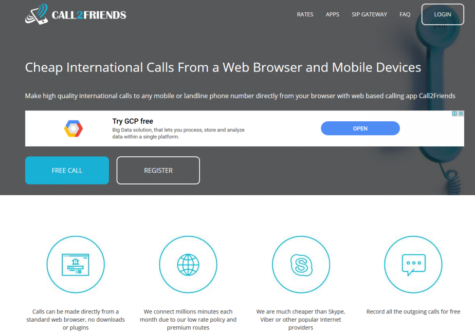 Ресурс, обладающий удобным и понятным русским интерфейсом. Здесь, как на остальных сайтах, существует ограничение по бесплатным звонкам. Всего за один день разрешатся провести два разговора на безвозмездной основе. Далее придется оплачивать связь в соответствии с установленными тарифами. Есть возможность отправки СМС, но только за деньги. Call2Friends– еще один онлайн сервис, предлагающий бесплатные телефонные переговоры с участием компьютера