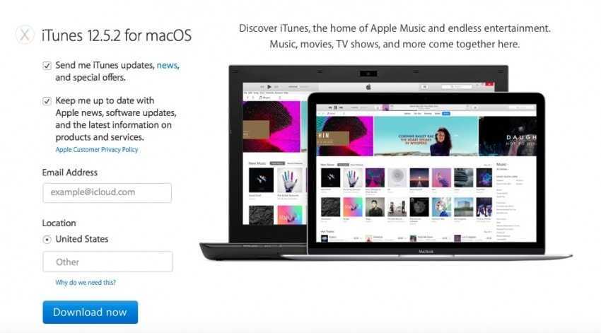 Загружаем актуальную версию «iТюнз» с официального сайта и устанавливаем её, следуя подсказкам на экране.