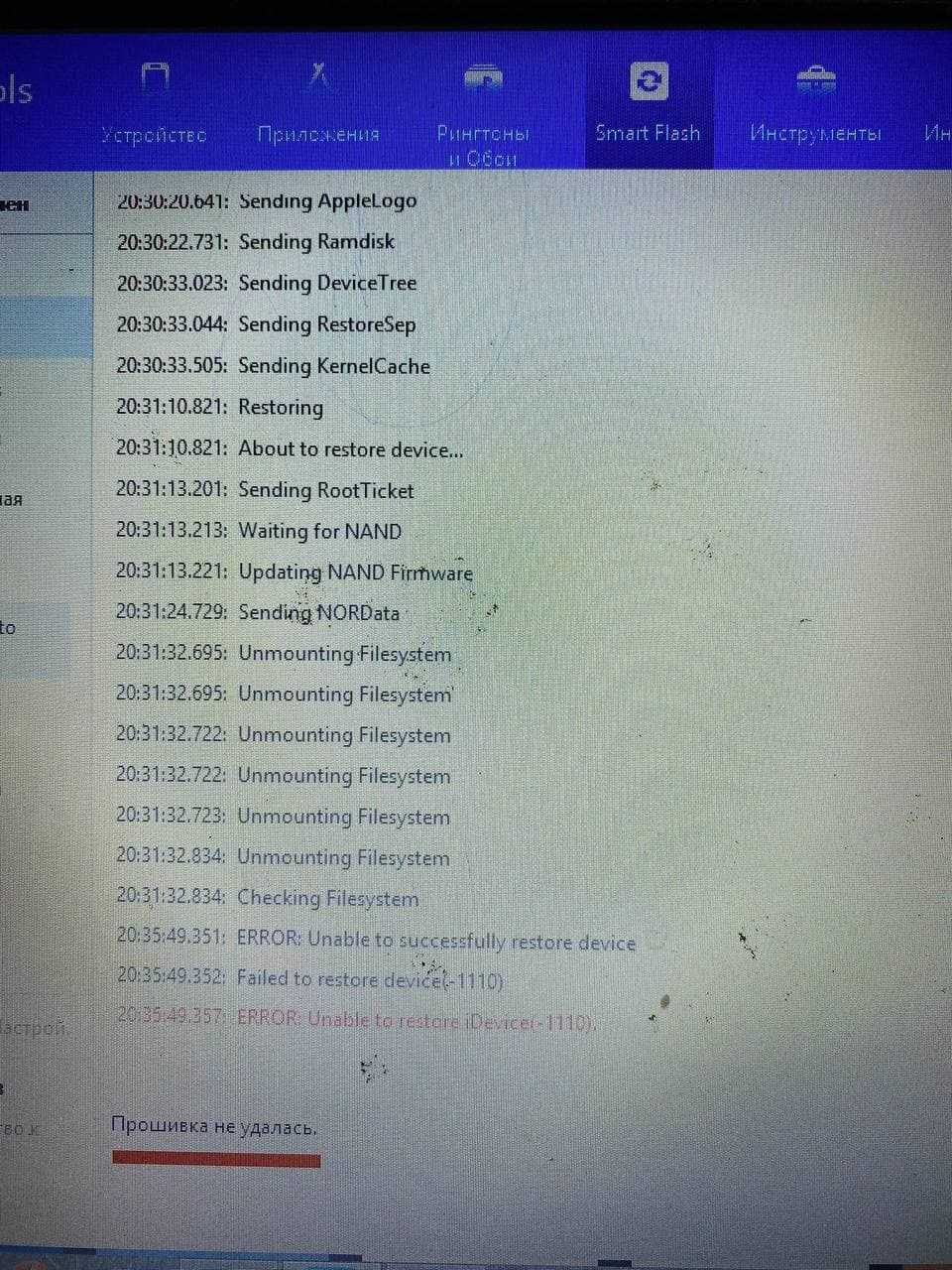 Ошибка 1110 при обновлении IOS в том числе 3utools