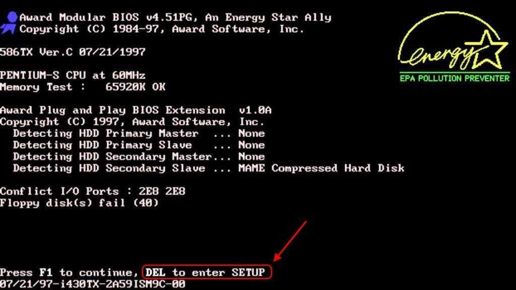 - Во время загрузки нажмите клавишу для входа в BIOS.