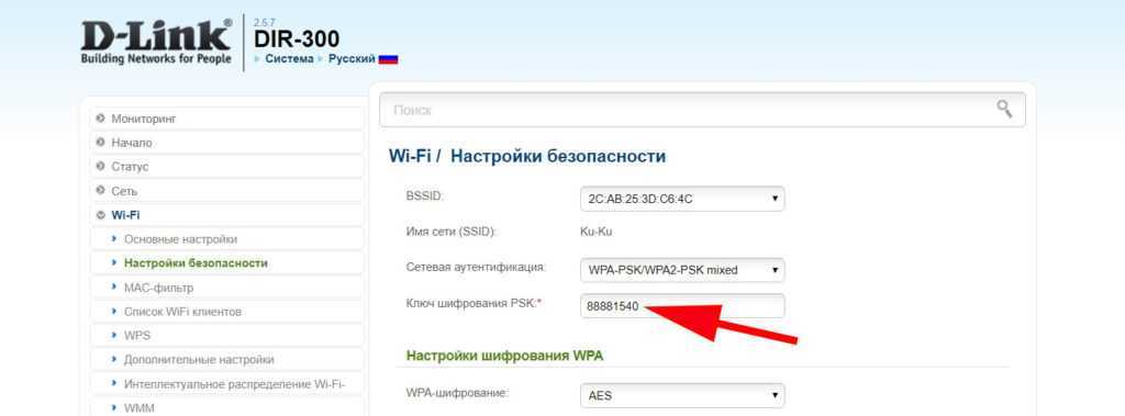 Итак, нажмите кнопку «Расширенные настройки». Далее найдите раздел «Wi-Fi» и выберите «Настройки безопасности». Найдите пункт «Ключ шифрования PSK» — это и есть наш пароль. Здесь же вы можете его изменить на свое усмотрение.