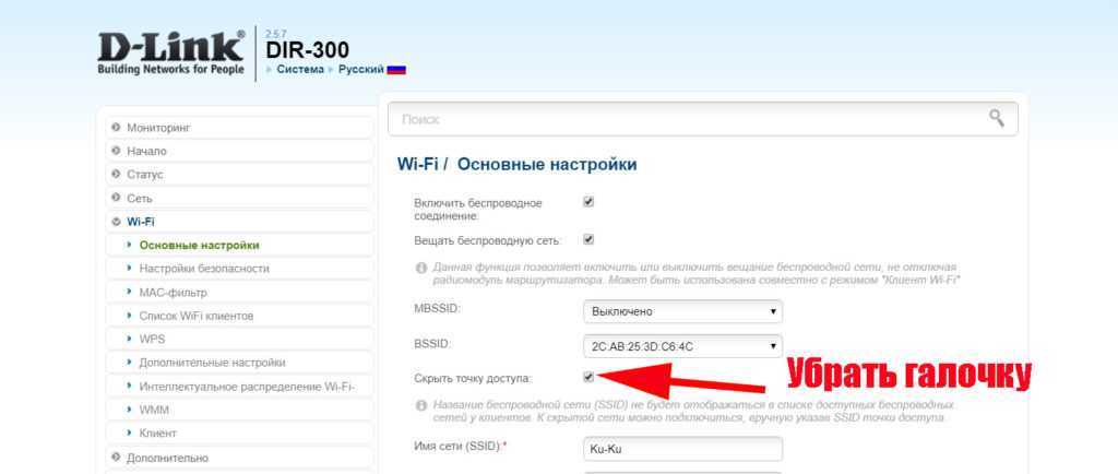Имейте ввиду SSID (название сети) должен быть написан на английском языке. И не вздумайте поставить галочку «Скрыть SSID», ваш гаджет этого может не понять.