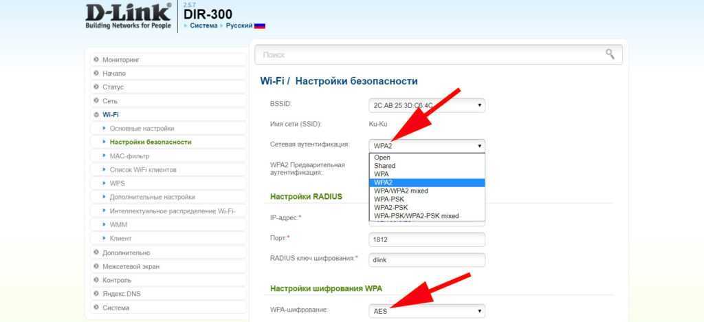 В том же самом разделе, куда мы попали во время инструкции из способа 2, есть параметр «Шифрование». Мы рекомендуем выставить его в положение AES – это стандарт используется чаще всего и отлично работает с большинством устройств. Еще стоит версию шифрования установить в положение WPA2 – стабильный, безопасный и быстрый стандарт, который отлично себя зарекомендовал.
