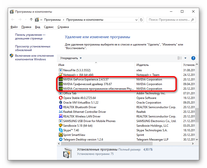 Перед началом работы требуется избавиться от прошлой версии программы. Выбирают пункт «Проводник» — «Удалить или изменить программу» — «NVIDIA Графический драйвер» и попросту удаляют. Далее нужно подтвердить удаление