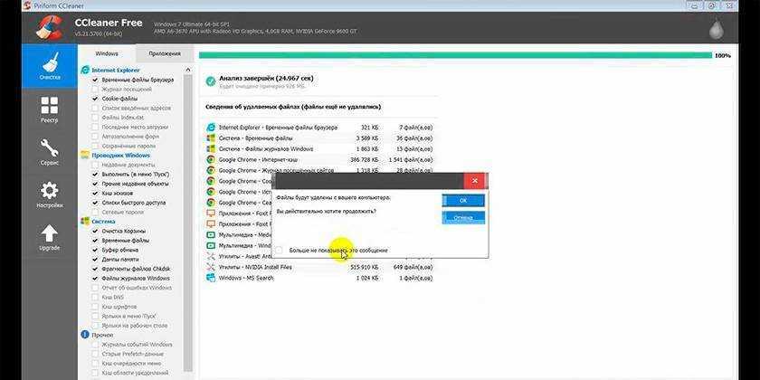 Выполнение удаления элементов из Appdata, чтобы повысить производительность компьютера, можно сделать при помощи специального софта. Программа CCleaner помогает деинсталлировать приложения, чистит реестр от поврежденных и устаревших файлов, помогает освободить место на диске С. Это избавит от необходимости вручную проверять содержание директории. Для проведения процедуры необходимо: