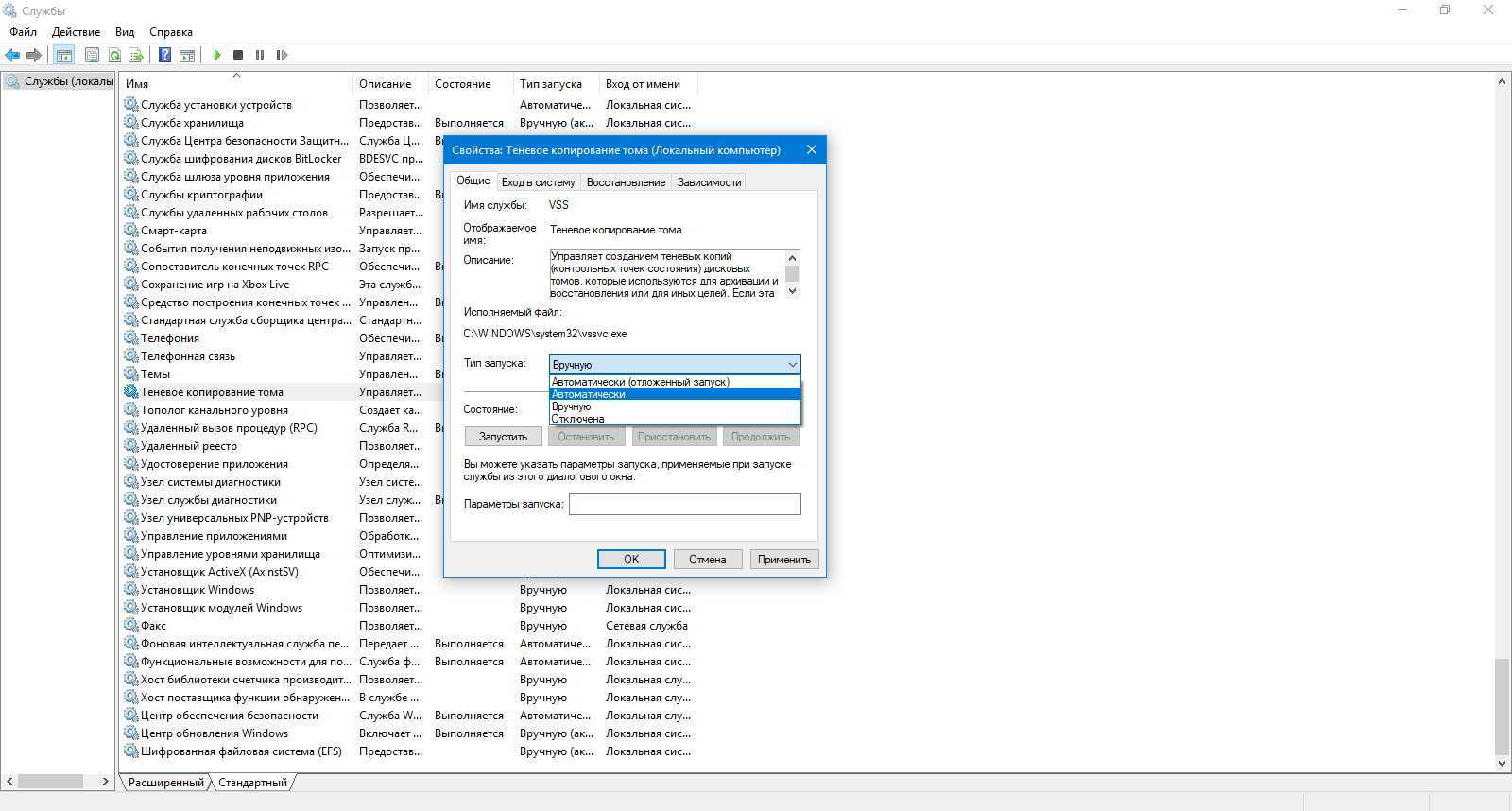 Если на компьютере не установлен пакет TuneUp или другие приложения для оптимизации Windows, возможно служба поставщика теневого копирования Microsoft не запущена.