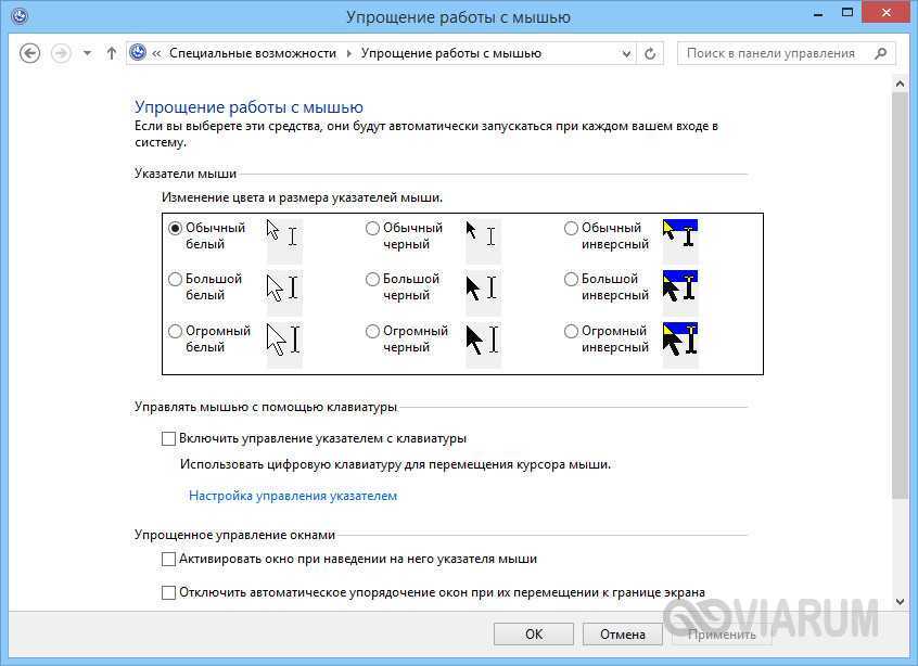 Как включить настройки смены курсора