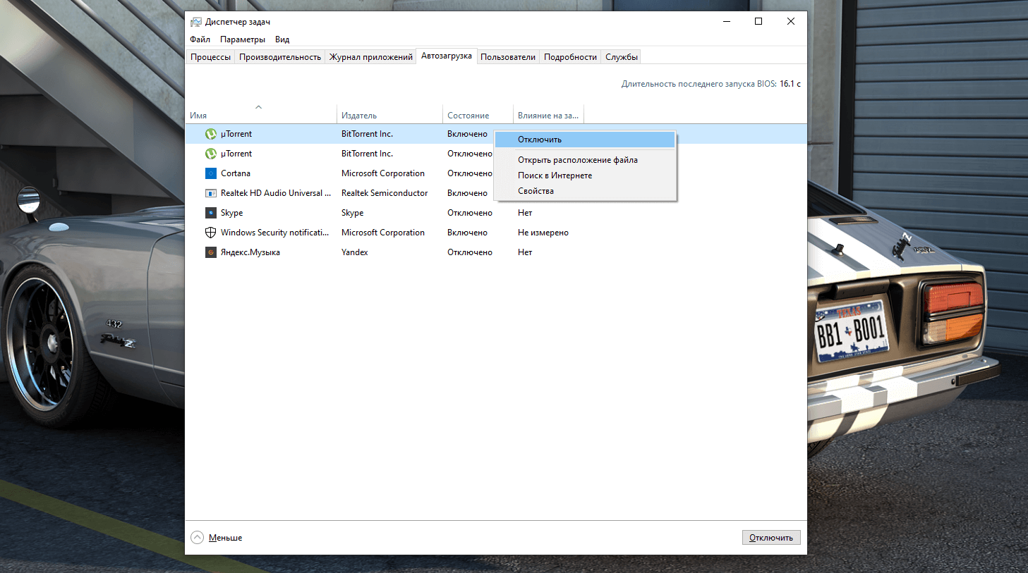 После исключения программ из автозагрузки, Windows 10 будет стартовать быстрее.