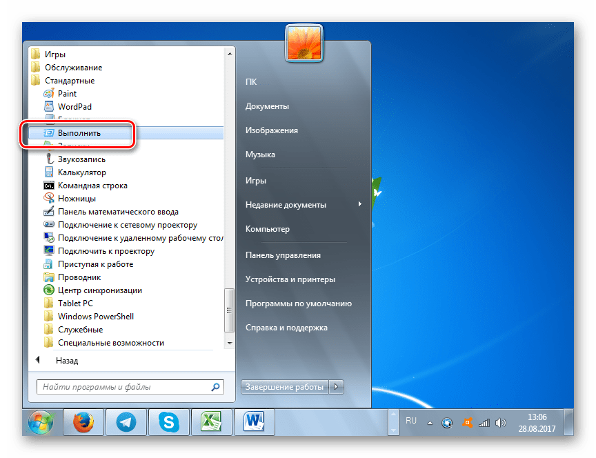 Как открыть окно «Выполнить» на Windows 7 и 8?