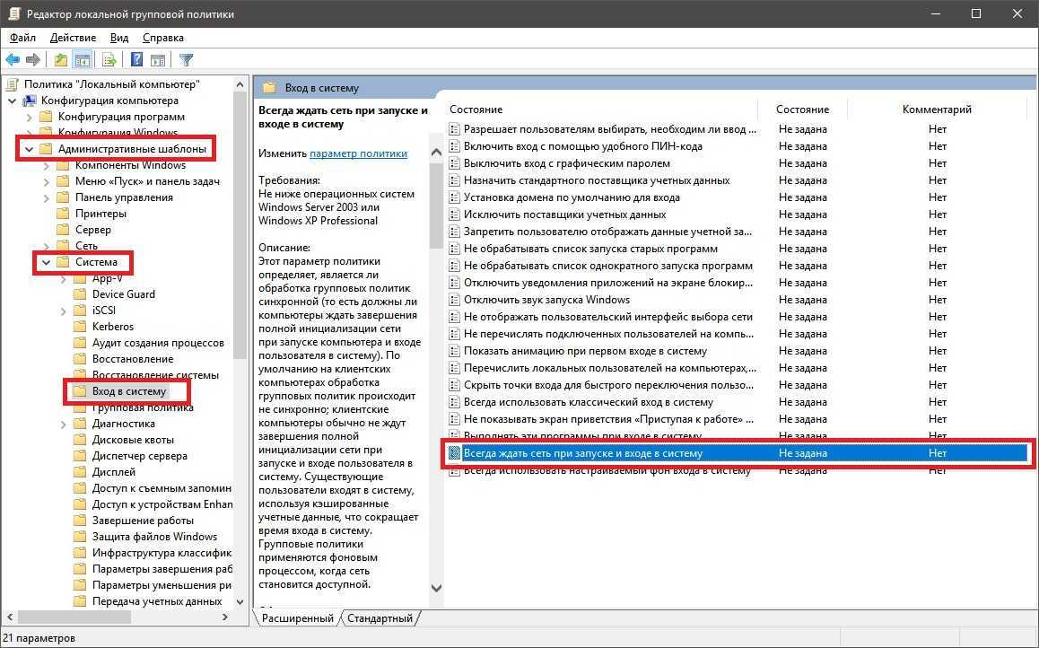 Метод №1 Включение «Всегда ждать сеть при запуске и входе в систему»