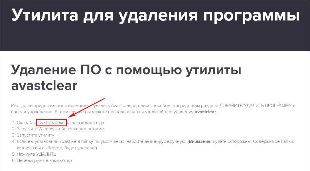 Если хотите, вы можете загрузить «Avast Uninstall Utility» с сайта support.avast.com.