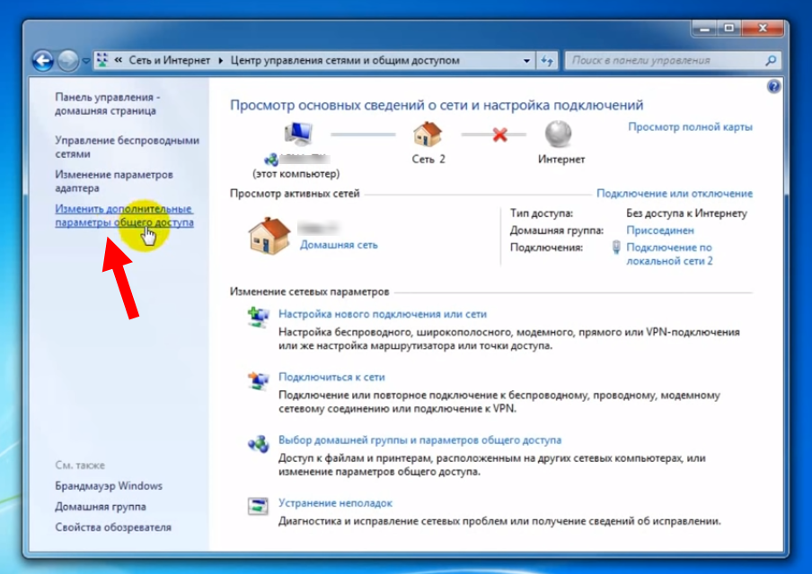 Дополнительно может понадобиться внести изменения в параметры общего доступа. Нажмите на последний пункт на панели слева.