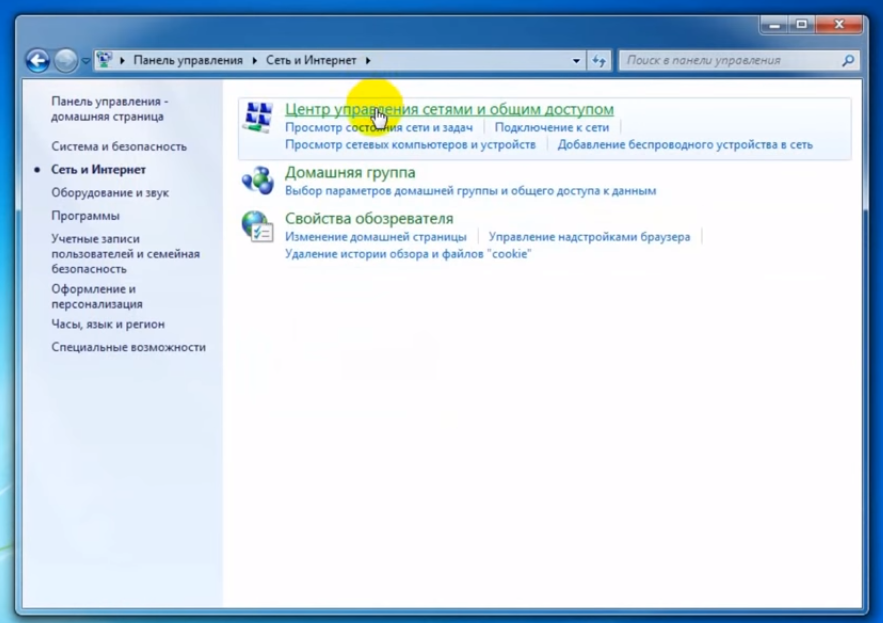 Для реализации первого варианта нажимаем правой клавишей мыши на значок «Сеть». Он расположен в нижнем правом углу, возле даты и времени. Выбираем вторую строчку сверху «Центр управления сетями….».