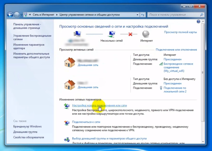Выскочит новое окно, теперь в нем жмем на строку «Настройка нового подключения…», «Настройка беспроводной сети…».
