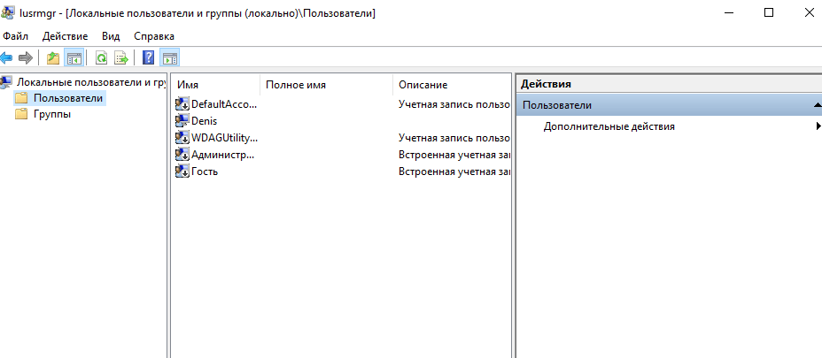 Запуск «Локальных пользователей и групп»