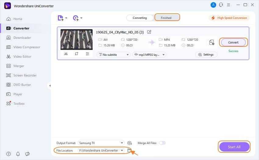 Теперь перейдем к последнему шагу, просто нажмите кнопку Конвертировать все , чтобы запустить конвертирование AVI в TV. После конвертации вы можете перенести файлы на жесткий диск и воспроизвести их на ЖК-дисплее с помощью кабеля HDMI или USB.